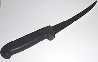 Curved, semi-stiff, black Fibrox handle. Not only are these excellent for boning, but I also use this size for skinning deer.